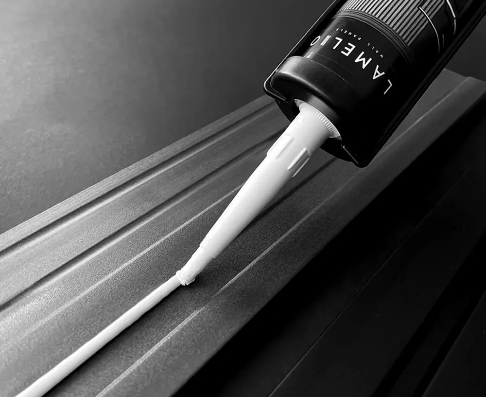 L’installazione dei pannelli è un puro piacere. Tutto ciò che devi fare è tagliare i pannelli alla lunghezza appropriata e utilizzare la colla della serie Lamelio. Abbiamo preparato per te due versioni di adesivi per ambienti asciutti e umidi