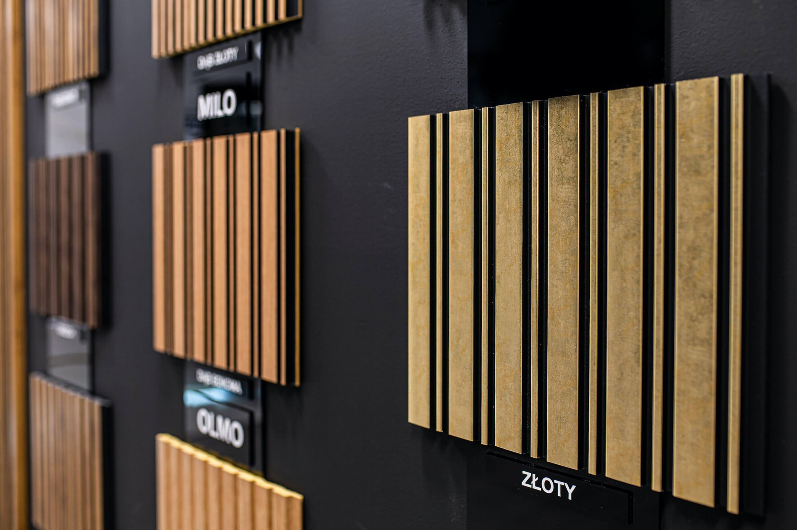 The Expo Basic Prime Edition by Lamelio is an aesthetically designed wall display measuring 138x175 cm. The upper part of the exhibit features the entire sales offering of our panels. The lower section includes four models of wall panels, each 85 cm in height, affixed directly to the wall, showcasing the full visual effect of the products offered. This display is the perfect solution for demonstrating the arrangement potential in commercial and design spaces.