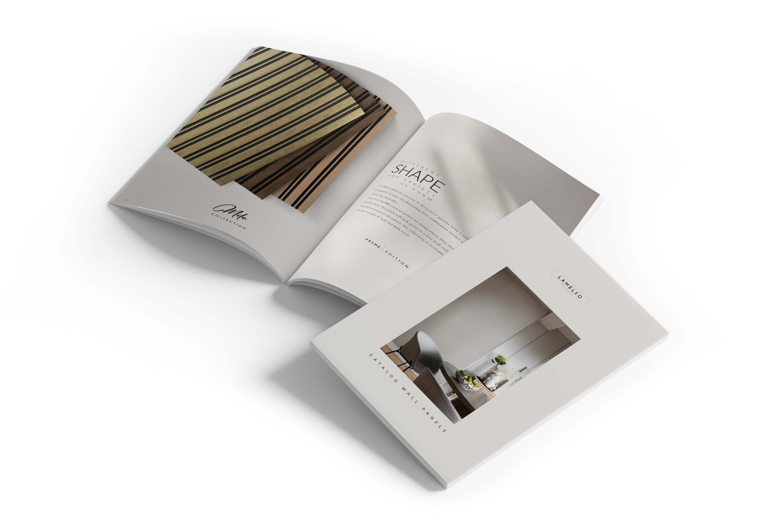 The Lamelio catalogue is a professionally curated publication that showcases the full range of the brand's wall panels in attractive interior arrangements. The catalogue's cover is minimalist, emphasizing the style and modernity of the offered solutions. These catalogues are an invaluable source of inspiration and provide comprehensive information about the products, enabling customers and business partners to familiarize themselves thoroughly with the assortment.
