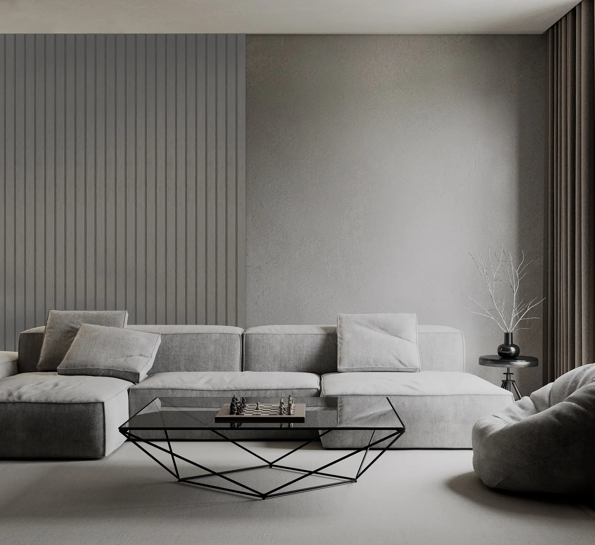 The panels from the Roca collection represent the essence of modern design with a refined, industrial accent. They stand out with wide slats featuring a concrete-like texture, giving interiors a raw yet cozy look while drawing attention with their unique surface. The collection is available in three timeless colors: Onyx Black, Stormy Grey, and Moonlight Grey. Roca slats are an excellent choice for spacious, modern interiors or commercial spaces, where their raw, concrete structure adds elegance and character. Their versatility makes them a perfect choice for industrial, loft, and minimalist arrangements.